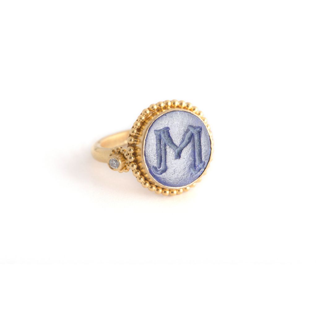 Anillo Griego Oro de 22kt con Lapislàzuli y Brillante.