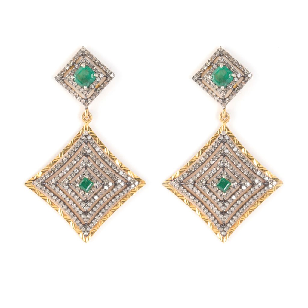 Arete Oro de 14kt con Esmeralda y Brillantes.