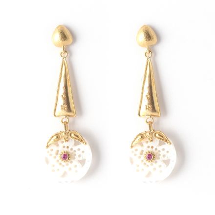 Arete Griego Oro 22kt con Madre Perla y Rubi.