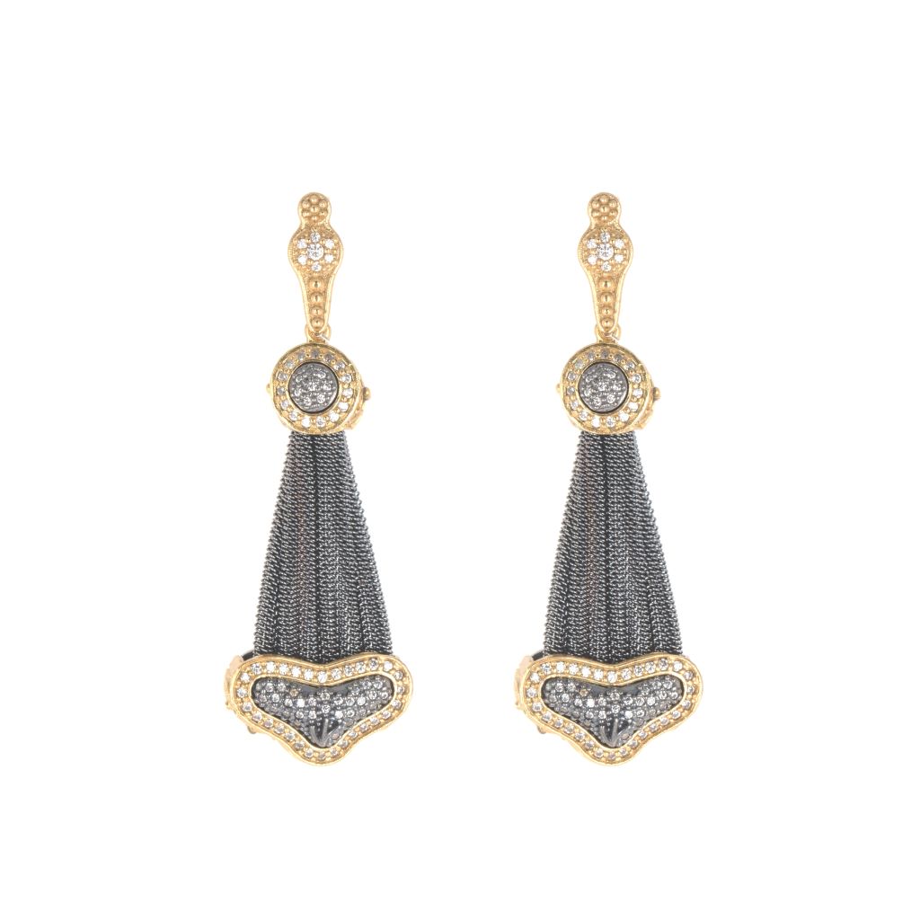 Arete Plata y Rodio con baño de Oro 18kt y Zirconias.