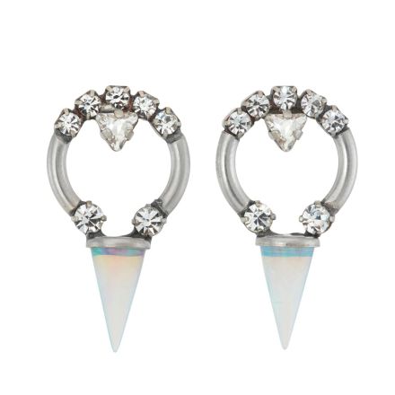 Arete Latón Plata oxidada con Swarovski y Ópalo sintético.