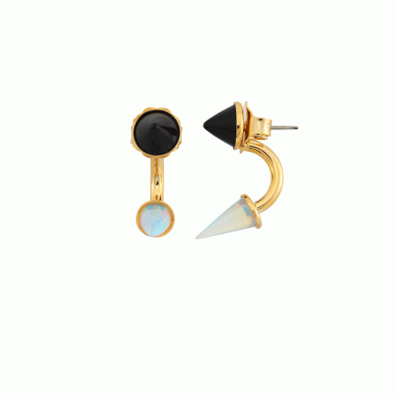 Arete Plata con baño Oro 14kt y Piedra sintética Opalo.