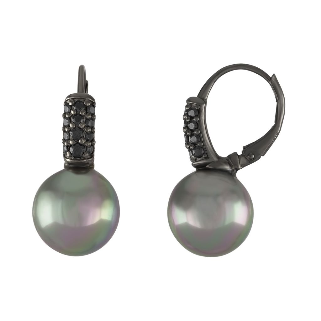 Arete con Perla Orgánica gris de 10 mm y Zirconia negra.