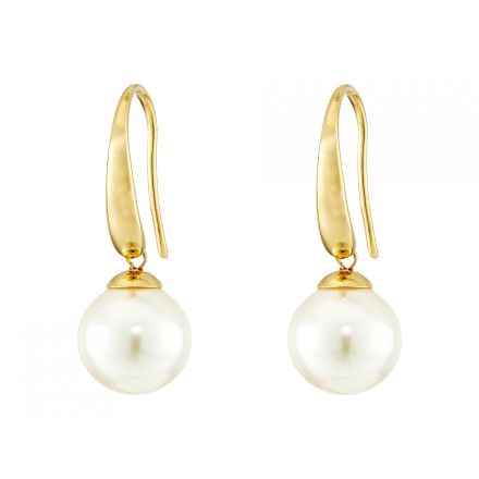 Arete con baño de Oro 18kt y Perla blanca redonda de 10mm. Hecho en España.