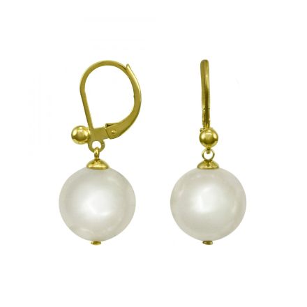 Arete plata con baño de Oro 18kt y Perla blanca redonda de 10mm.