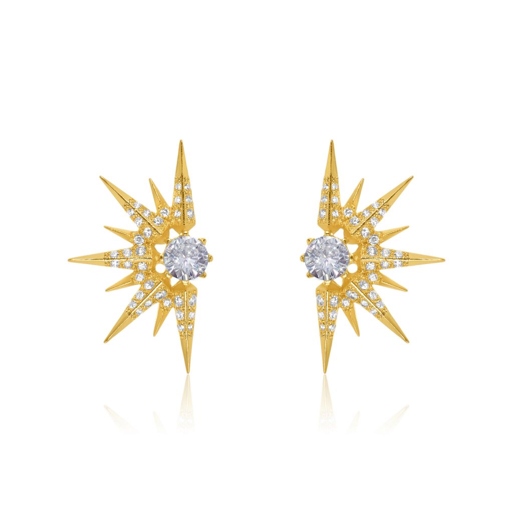 Arete Plata con baño de Oro 18kt. y Zirconias.