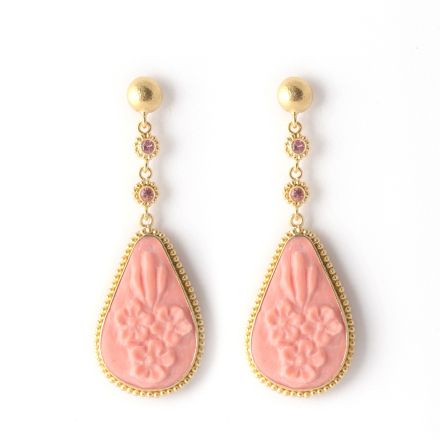 Arete Griego Oro de 22kt con Coral y Rubi.