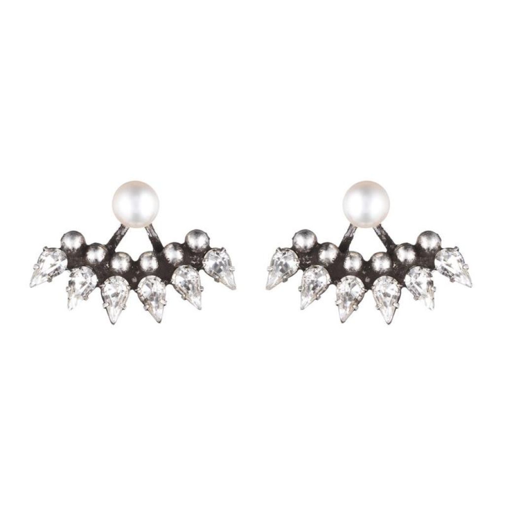 Arete Latón Plata oxidada con Perlas y Swarovski.