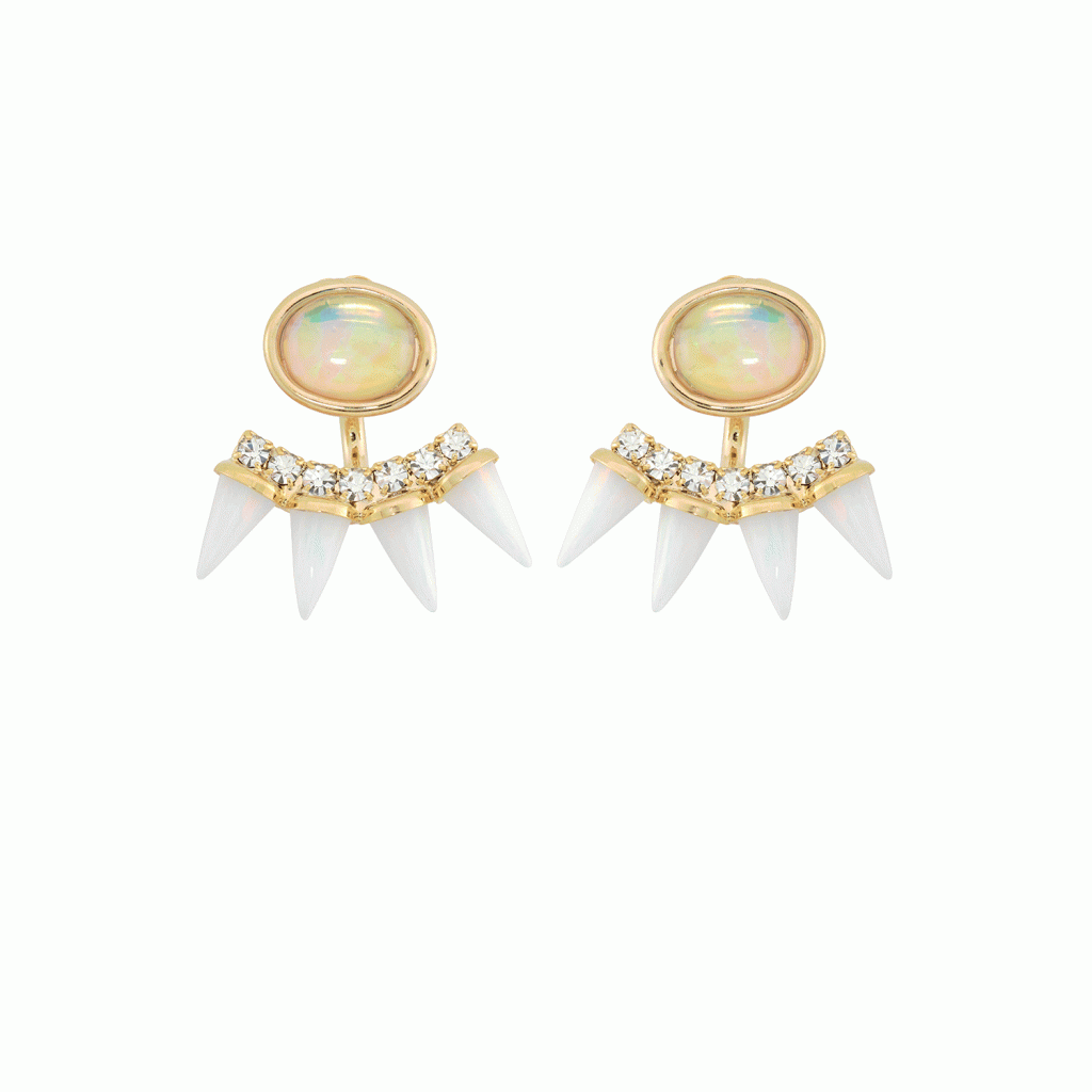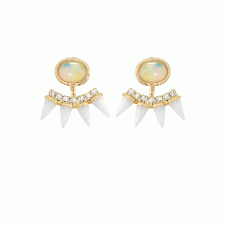 Arete Latón con baño de Oro 14kt. Swarovski y Ópalo sintético.