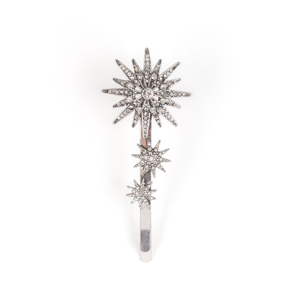 Peineta Latón plata oxidada con Piedras de Cristal.