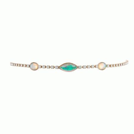 Collar Latón con baño Plata y Piedras Swarovski, Ópalo sintético.