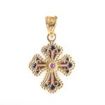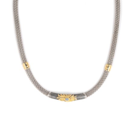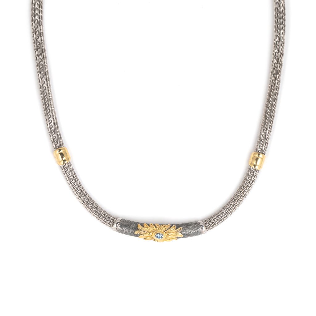 Collar Griego Plata con baño de Oro 14kt y Piedra Semi preciosa.