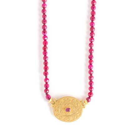 Collar Griego con Dije Oro de 18kt Rubi y Turmalina.