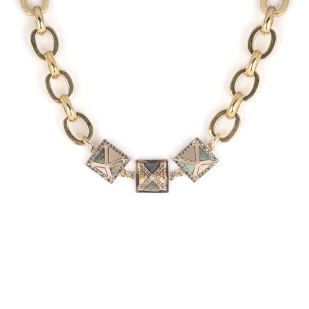 Collar Latón con baño de oro 24k. Piedras de Cristal y Labadorite.