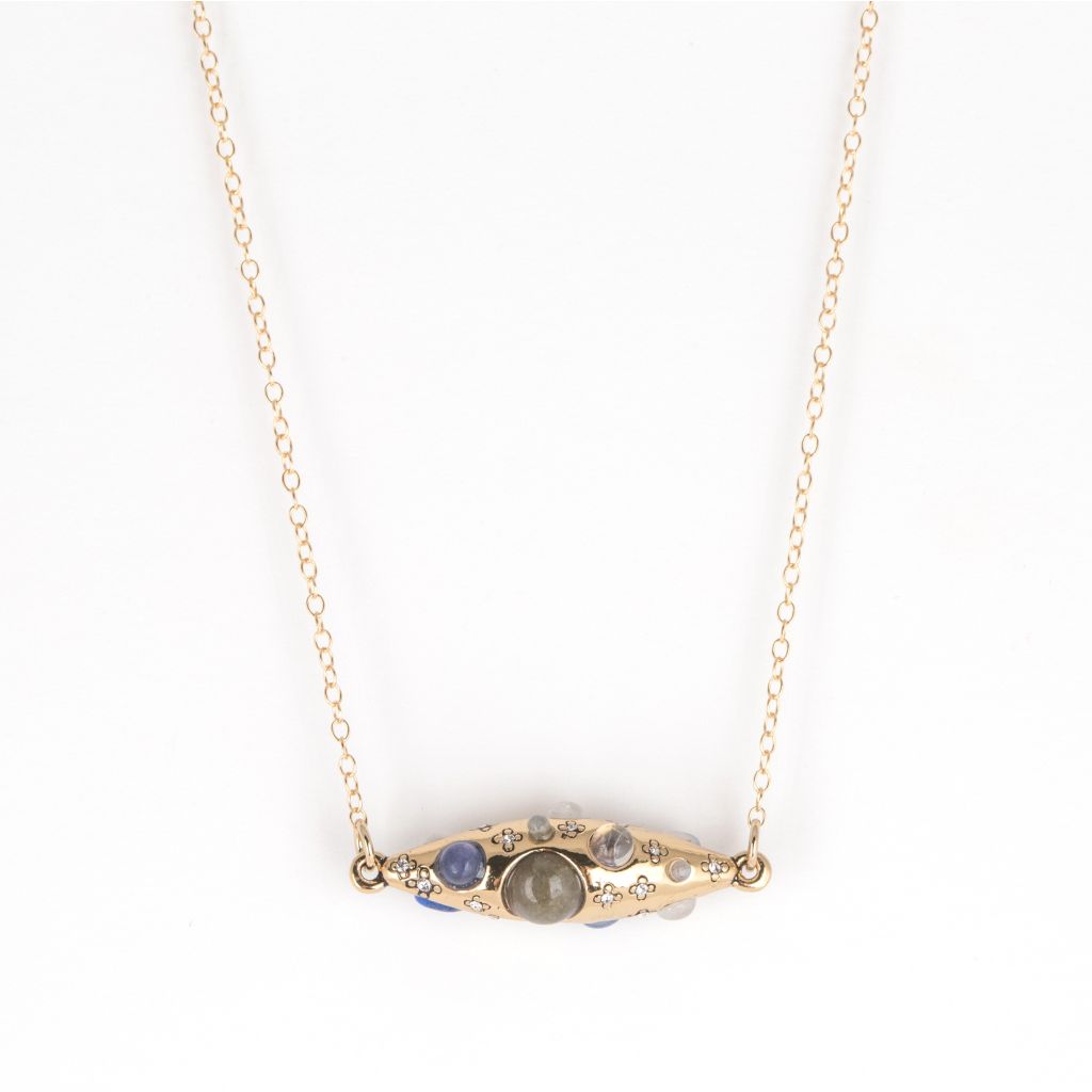 Dije Latón baño de oro 18k y piedras semi preciosas.