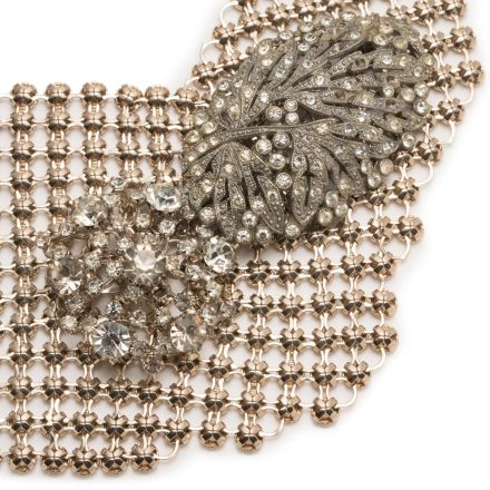 Collar Latón con baño Plata y doble Prendedor removible piedras de Cristal.