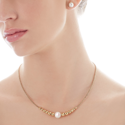 Collar con baño Oro y Perla Orgánica de 10mm. Hecho en España.