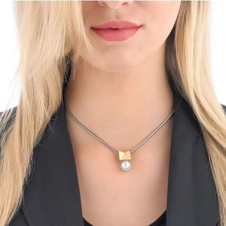 Collar Rodio con Piramide en baño de Oro y Perla de 10mm.