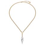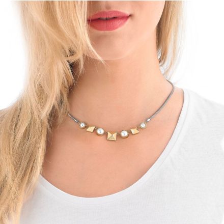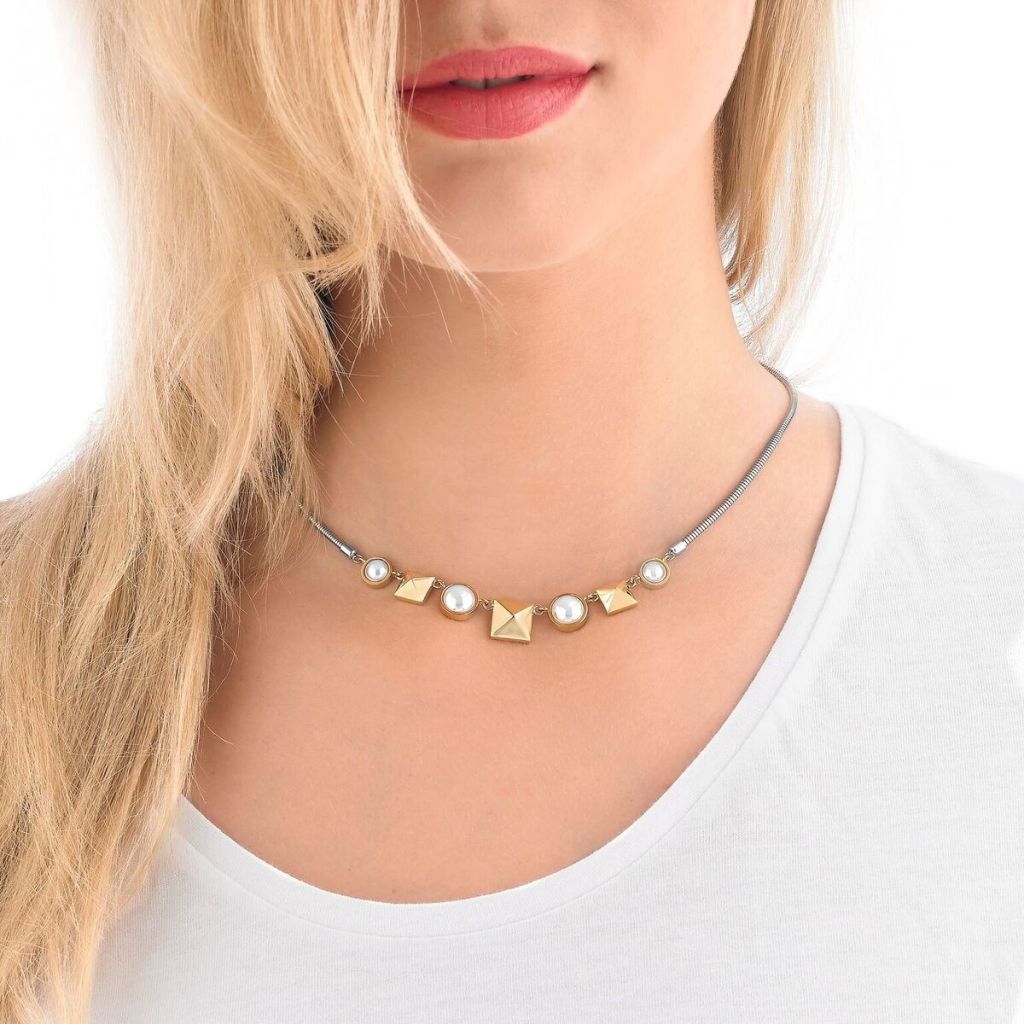 Collar Rodio con dije Pirámide baño Oro y Perla blanca de 8mm. Hecho en España.