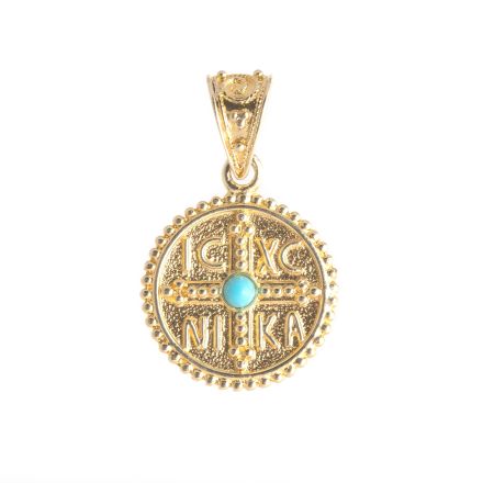 Escapulario Griego Oro de 14kt con Piedra Turquesa.