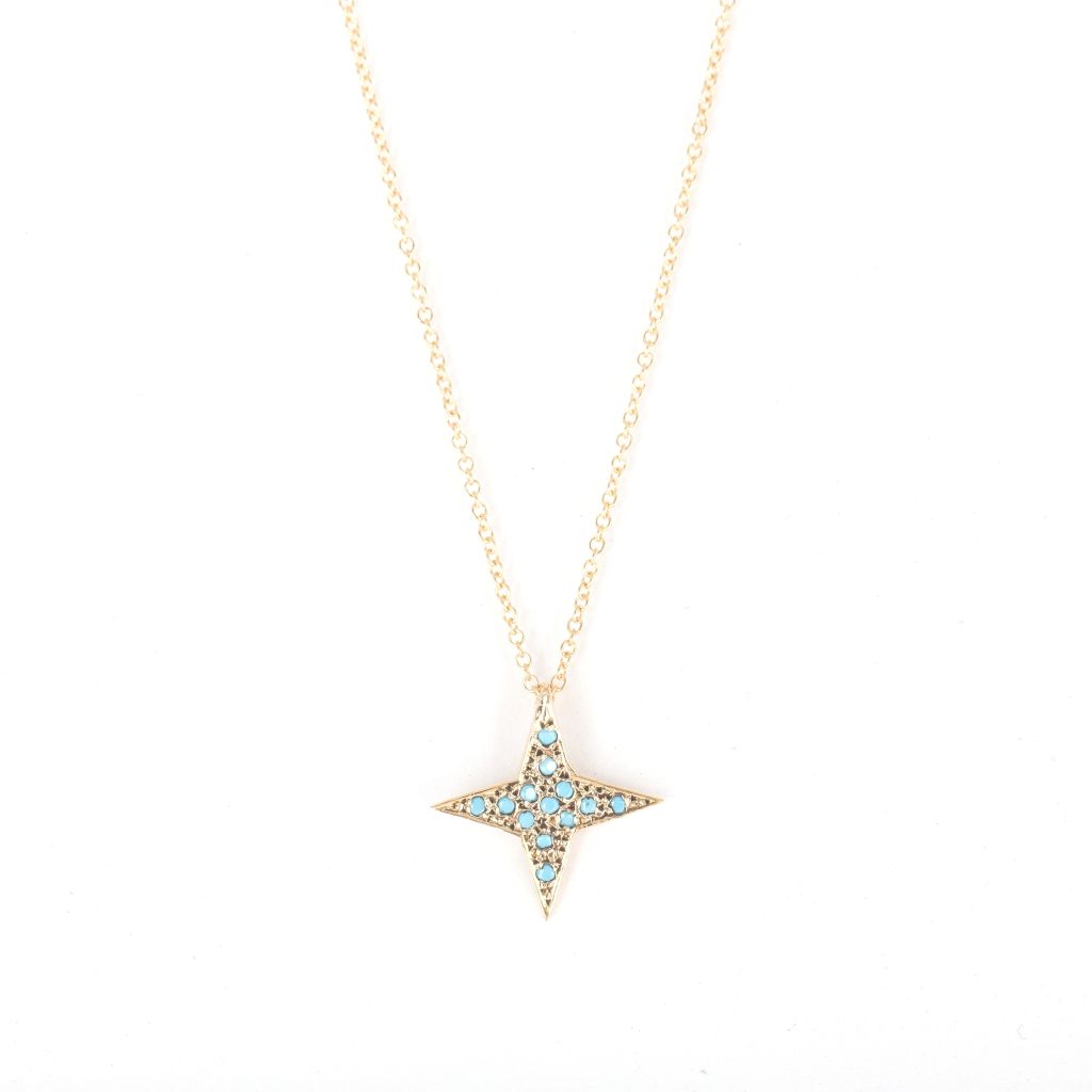 Dije Estrella Griego Oro de 14kt con Turquesa.