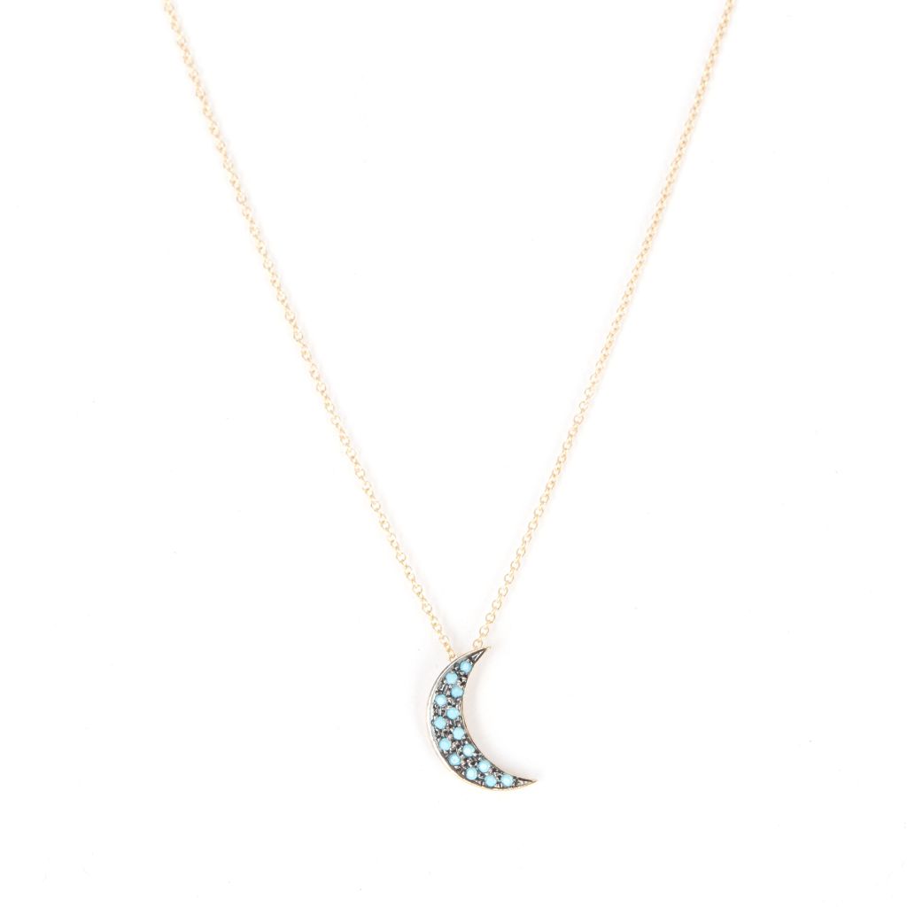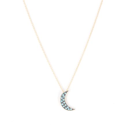 Dije Luna Griego Oro de 14kt con Turquesa.