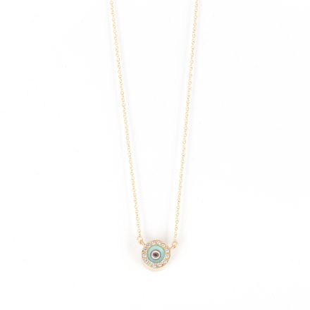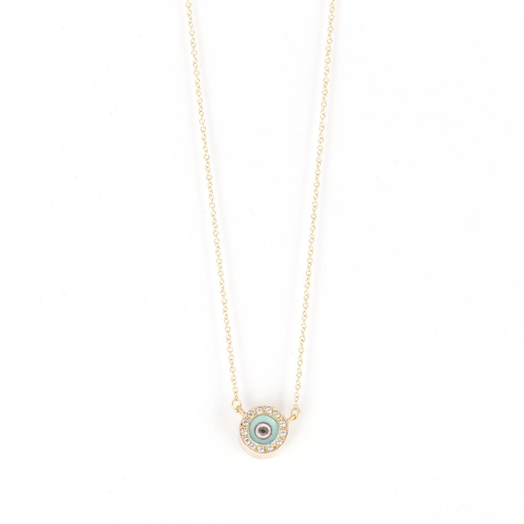 Dije Ojo Griego Oro de 14kt con Topacio blanco y Turquesa.