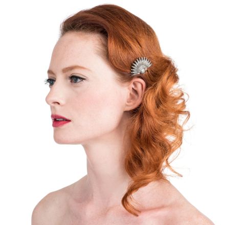 Peineta Latón con baño Plata y Piedras de Cristal.