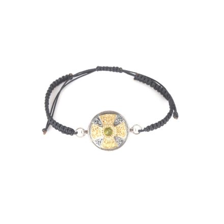 Pulsera de cordón con Dije Plata baño de Oro 18kt y piedra Semi preciosa.