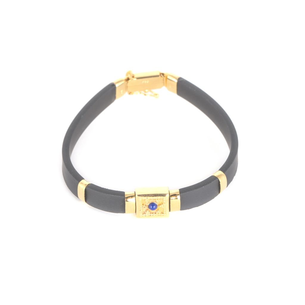 Pulsera Caucho Plata con baño de Oro 18kt y Piedra Semi preciosa.