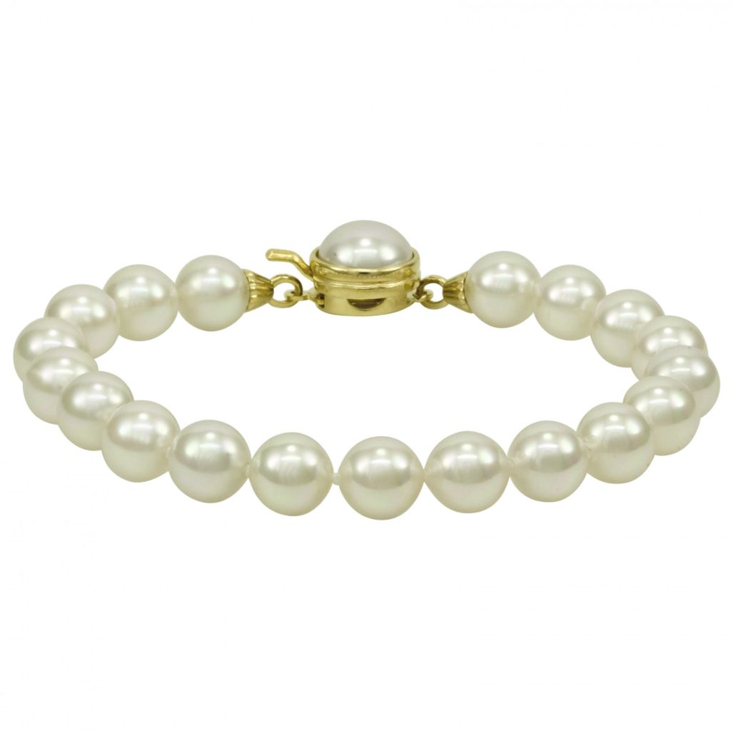 Pulsera Perlas de 14mm. con broche Oro vermeil 18kt. Hecho en España.