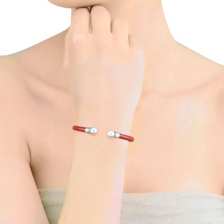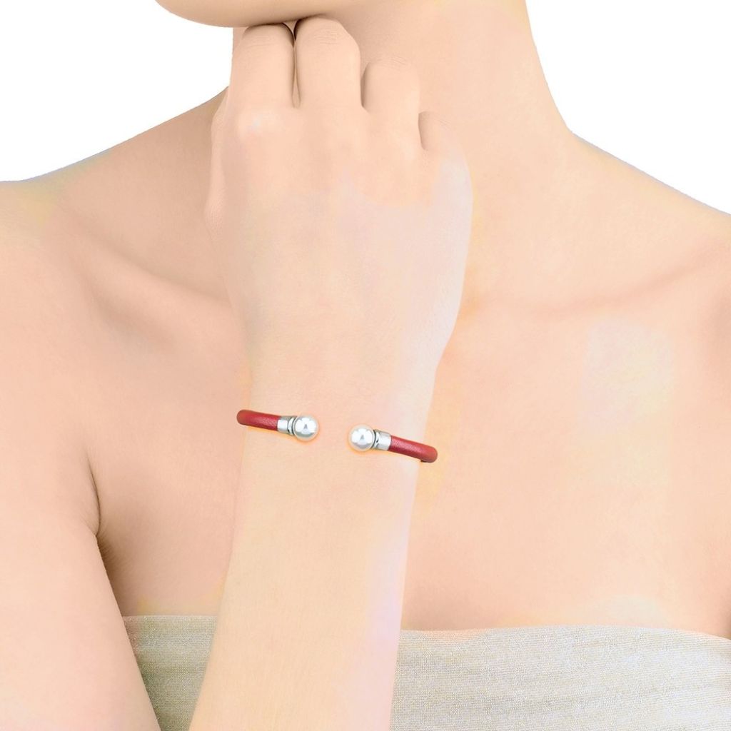 Pulsera piel con Perla blanca redonda de 8mm. Hecho en España.