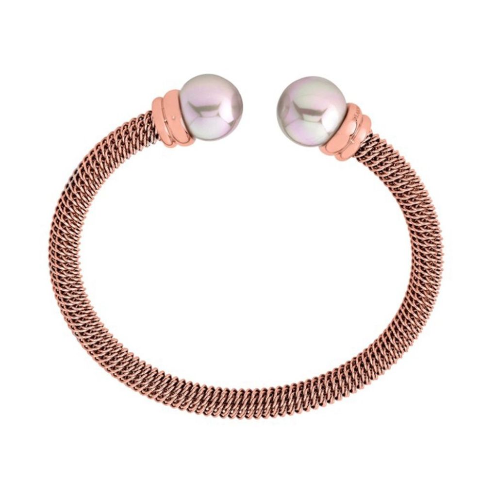 Pulsera en Acero rosado con Perla redonda de 12mm. Hecho en España.