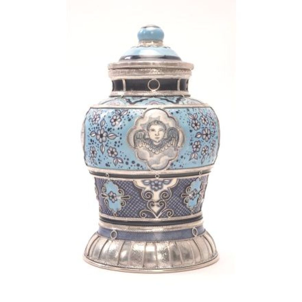 Tibor de Cerámica con Alpaca, Hecho a mano.