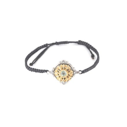 Pulsera de cordón con Dije Plata baño de oro 18kt y Piedra Semi preciosa.