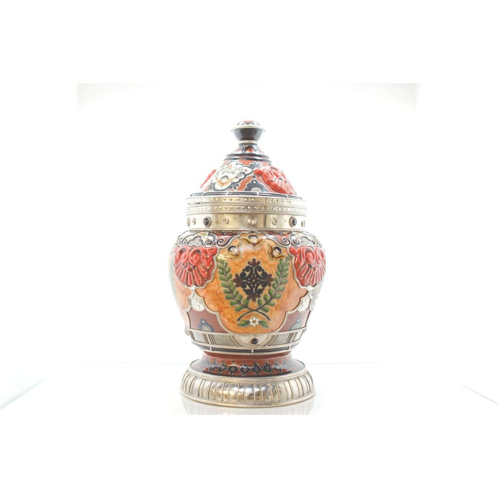 Tibor Cerámica con Alpaca, hecho a mano.