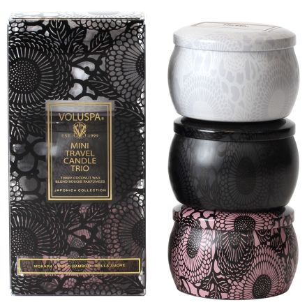 Set de tres velas: Mokara, Moso Bamboo, Bella Sucre. 4oz / 113g. c / u.